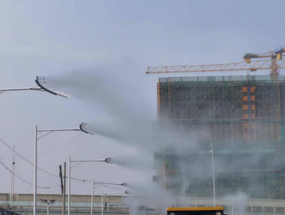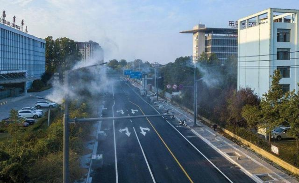 要想彻底解决道路扬尘污染问题,必须创新完善清扫保洁模式,充分发挥并挖掘路灯杆喷雾系统、旋转喷雾桩的优势,结合物联网智能控制模式,在扬尘污染严重的路段进行高空抑尘、路面清洗,认真落实大气污染防治“精准、科学、精细”的总方针,全面强化道路降尘除尘抑尘作业。