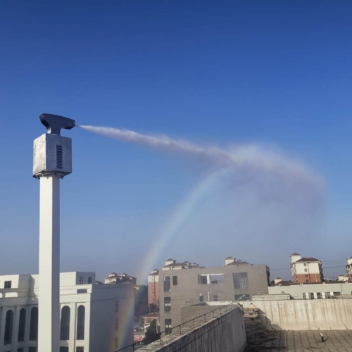 雾炮又称雾炮机、喷雾炮,根据风送原理,先使用进口高压泵以及微细雾化喷嘴将水雾化,再利用风机风量和风压将雾化后的水雾送到较远的距离,使得水雾到达较远距离同时能够覆盖更大面积,水雾与粉尘凝结后降落,从而达到降尘目的。