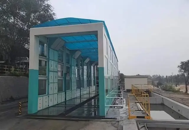 智能洗车机采用集成式洗车房和机房,结合传感技术、机器识别等技术,实现对工程车车辆的高效、快捷的连续冲洗、废尘再回首等整套作业方案,帮助工业企业通过清洗运输车辆轮胎、车头、底盘及车身等部位的无组织排放粉尘,避免这些残留粉尘四处散逸,对环境造成污染。