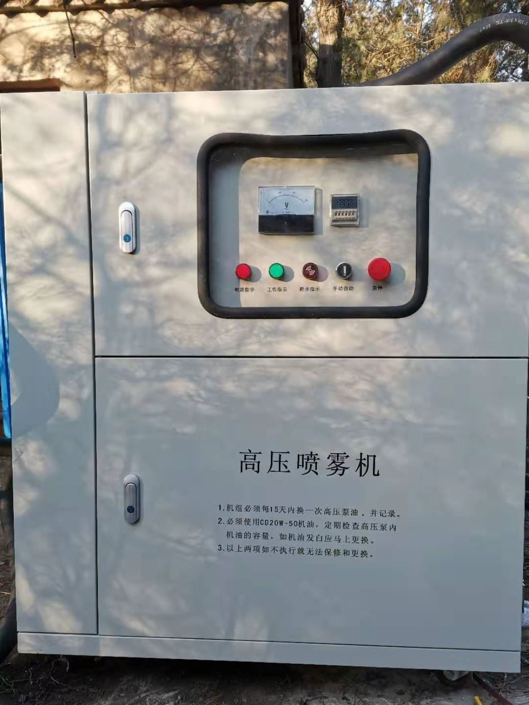利用高压柱塞泵将水压提高到 7Mpa,然后将加压后的水经耐高压输送管线由专业喷嘴将其雾化,产生3-15um的微雾颗粒,使其能够迅速从空气中吸收热量完成汽化并扩散,从而完成空气加湿、降温的目的。