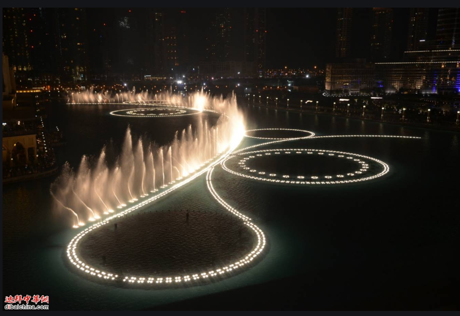 迪拜音乐喷泉是世界最大的喷泉,由美国Bellagio喷泉的制造商WET公司设计的,总投资2.18亿美元,比美国的Bellagio喷泉大25%,成为目前世界最大的音乐喷泉。于2009年3月开始对外开放。音乐喷泉平日每天从晚上6点到10点,每半小时表演一次,每次表演长达3-5分钟,周末从晚上6点表演到11点、并在晚上9点后增加至每20分钟表演一次。音乐喷泉位于:哈利法塔原名迪拜塔旁边的人工湖上,喷泉建成后,将成为迪拜的又一标志性景观。喷泉位于一个人工湖之上,从人工湖吸水喷入高空后最终又落入湖中,覆盖面相当于两个足球场大小。在180多亩的人工湖上,水柱将高达150米,比一座50层的大楼还要高。