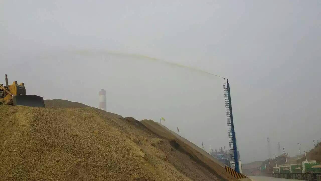 此喷淋防尘工程于2015年7月开始建设,主要设备有:进口意大利大喷枪共5只,以色列进口电磁阀4″电磁阀2套,2″电磁阀3套,美国8819自动泄水阀5套,控制柜(动力控制系统)1套,喷淋变频自动控制系统(控制系统)1套,西门子大触摸屏、动力控制系统采用ABB大功率变频器启动水泵,流量为240吨每小时、扬程160米。
