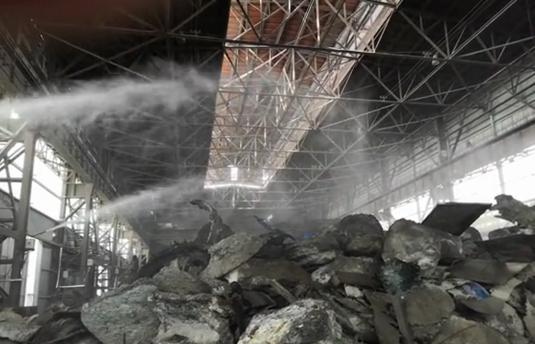 此项目于2020年10月底完工,在厂区炼铁厂1#烧结机区域、2#烧结机区域、3#烧结机区域,进行高压细水雾降尘工程、共安装三套高压细水雾主机及五十套高压喷雾喷枪,喷雾效果覆盖整个烧结区域,达到降尘喷雾的效果。